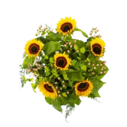 De practhige combinatie tussen zonnebloemen en groen geeft boeket zonnestraal een gezellige en zomerse uitstraling. Dit zonnebloemen boeket creëert meteen een prachtige sfeer in huis. Bovendien geschikt voor verschillende gelegenheden. Feliciteer, bedankt of verstuur zomaar dit prachtige handgebonden boeket en verras de ontvanger! * Exclusief accessoires en vaas