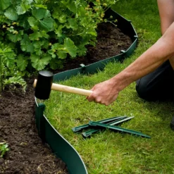 De groene grondpennen zijn gemaakt van gerecycleerd polyethyleen. Ze zijn 26,7 cm hoog. De ankers worden gebruikt om tuinborders vast te zetten en de randen van jouw gazon te vrijwaren.