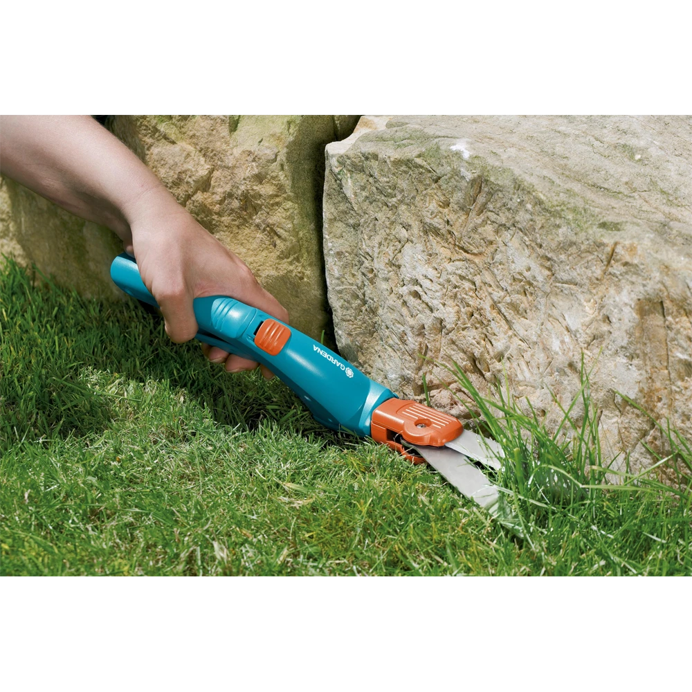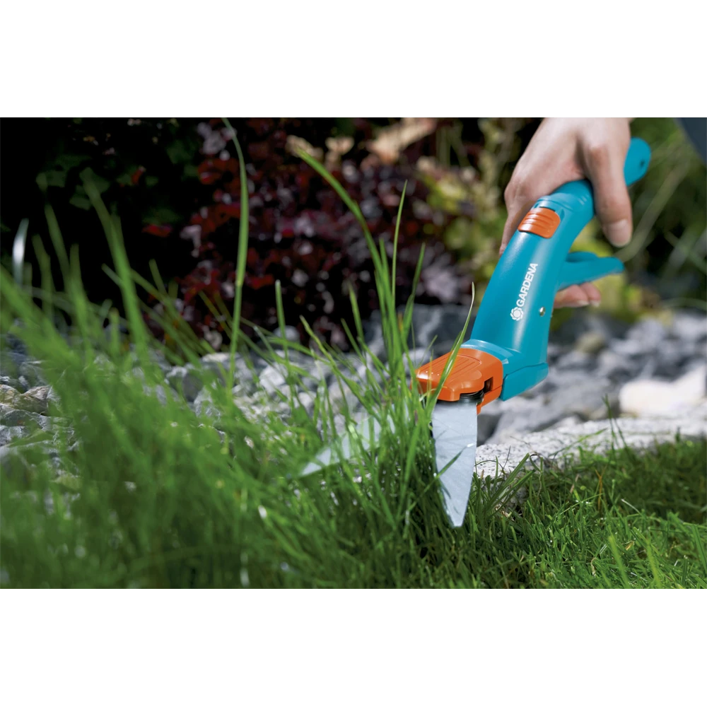 Met de flexibele GARDENA Classic grasschaar kunt u de graskanten nauwkeurig bijwerken. De ergonomische vorm van de handgreep maakt het snoeien heel eenvoudig. Door het draaimechanisme van 360° kunnen zowel linkshandige als rechtshandige mensen comfortabel met deze schaar werken. Dankzij de geharde en gegalvaniseerde messen heeft deze grasschaar een lange levensduur. De schaar is ook roestbestendig. Door de speciale gelagerde messen kan het gras over de volledige meslengte krachtig worden bijgeknipt. U kunt de grasschaar snel en eenvoudig vergrendelen met de praktische enkelhandige vergrendeling.