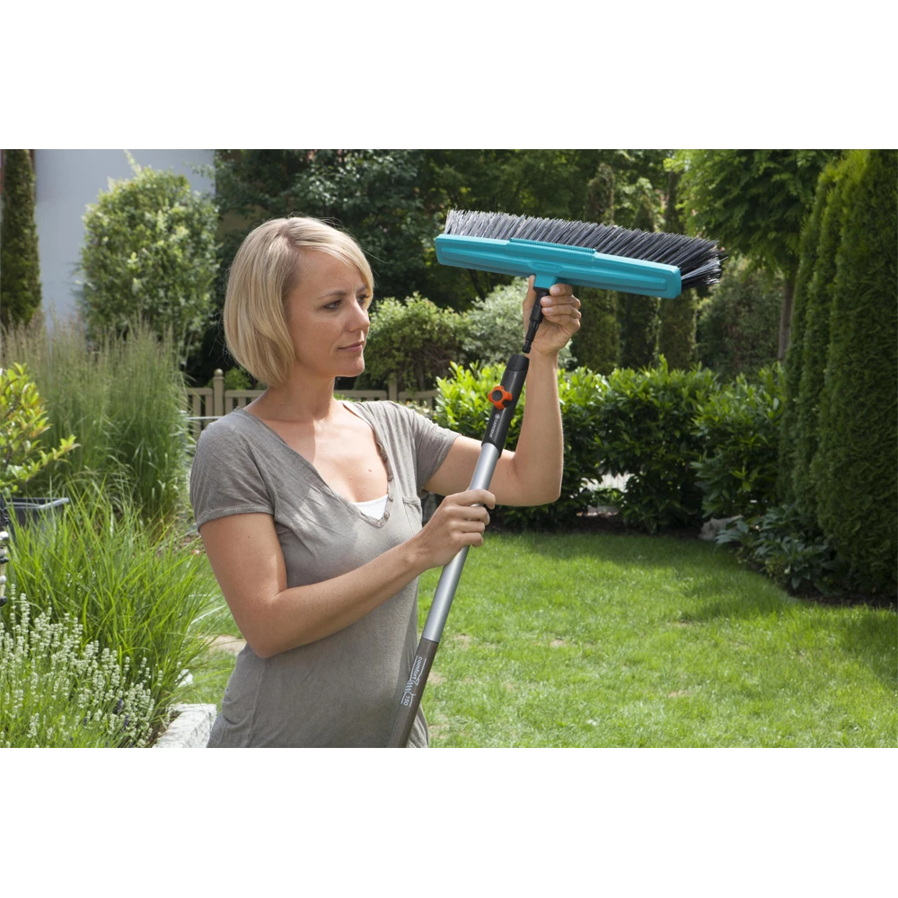 De GARDENA combistem straatbezem met schraper is ideaal voor gebruik in de tuin en rondom huis. Dankzij de werkbreedte van 45 cm en hoogwaardige, slagvaste kunststof borstelhuis, is deze bezem veelzijdig inzetbaar. Uitstekende en efficiënte reinigingsresultaten dankzij harde en zachte polypropyleen borstelharen van hoogwaardige kwaliteit. De schraper op het borstelhuis zorgt voor moeiteloos verwijderen van aangekoekt vuil of natte bladeren. De straatbezem is te gebruiken in combinatie met alle GARDENA combisystem stelen. GARDENA adviseert een lengte van 130 of 150 cm, afhankelijk van de lichaamslengte.
