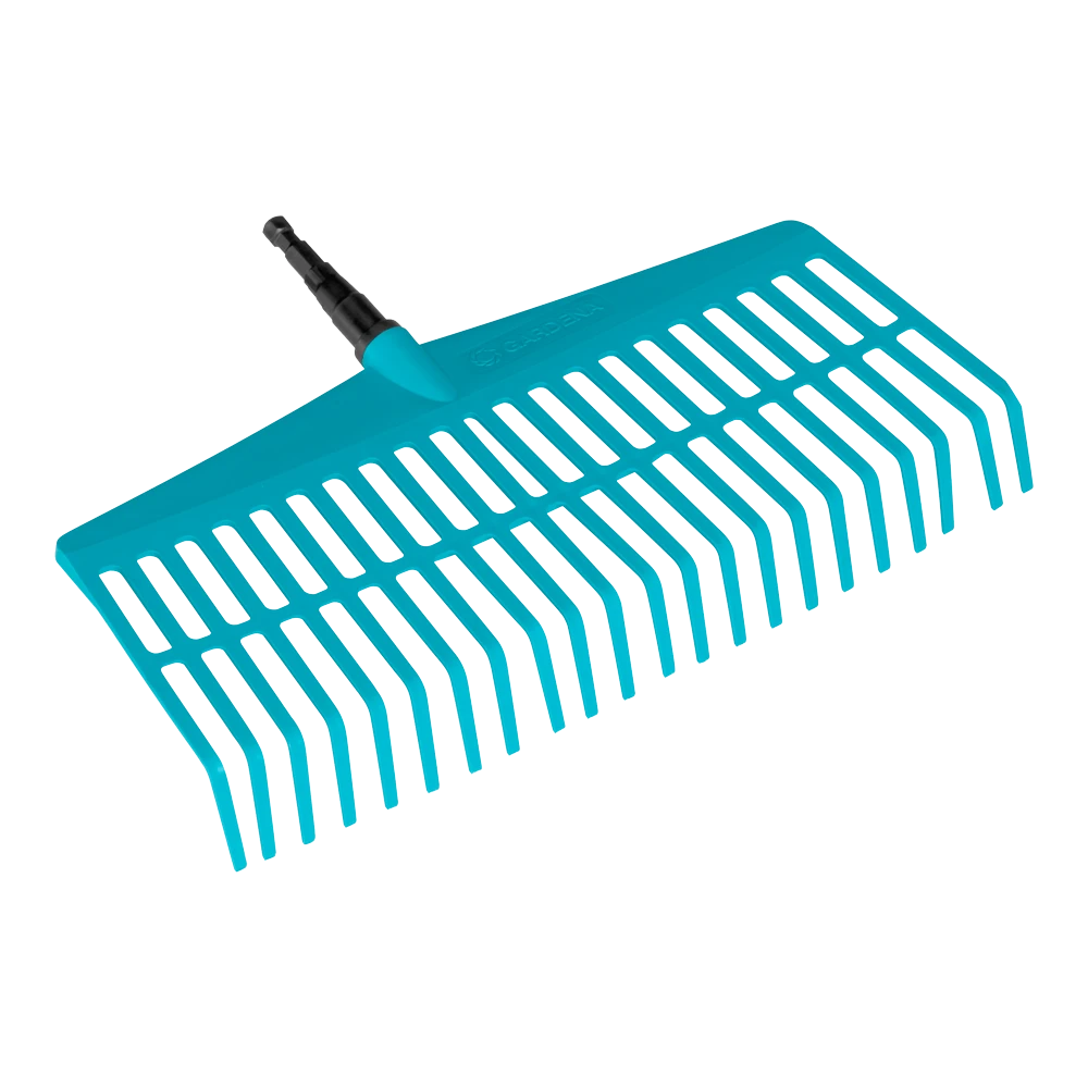 De GARDENA combisystem-gazonhark is uitstekend geschikt voor het bijeenharken van blad, grasresten, verticuteermateriaal en ander tuinafval. De stevige tanden van hoogwaardige kunststof, die zijn opgesteld over een werkbreedte van 43 cm, garanderen een eenvoudig en praktisch gebruik, waarbij het gazon wordt ontzien. De gazonhark is geschikt voor alle stelen van het GARDENA combisystem, waarbij GARDENA een steellengte van 130 cm adviseert, afhankelijk van uw lichaamslengte.