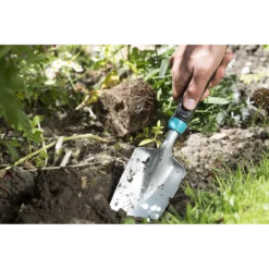 De GARDENA handschepje is ideaal voor het planten en verplanten. De ergonomisch gevormde handgreep past perfect in de hand en de hoek aan het einde voorkomt het wegglijden. De schep heeft een breedte van 8,5 cm en is gemaakt van hoogwaardig staal. De Duroplast coating zorgt voor een lange levensduur van het product.