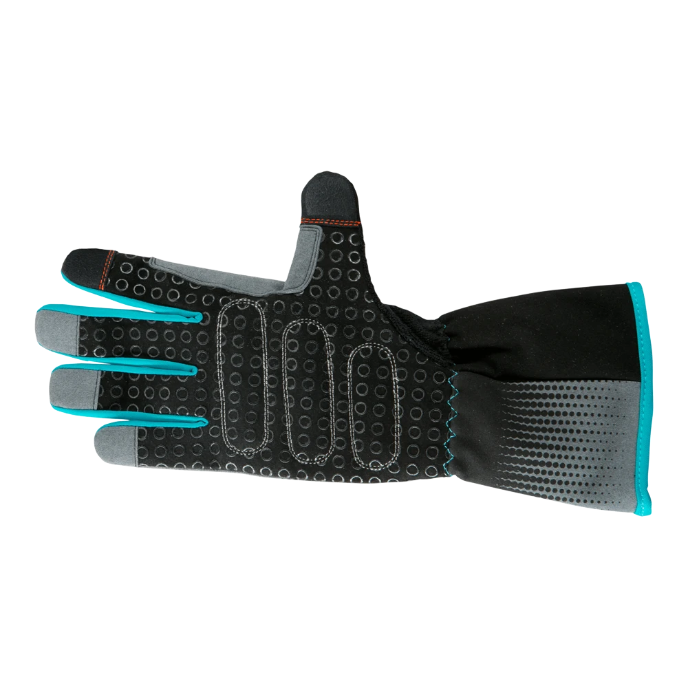 Als u de handschoen voor rozen in maat M van GARDENA draagt, kunt u voorzichtig werken en tegelijkertijd goed beschermd zijn. De tuinhandschoen voor middelgrote handen is voorzien van een lange boord met verstelbare polssluiting. Deze combinatie beschermt uw pols en uw onderarmen betrouwbaar. Bovendien worden bijzonder gevoelige gebieden zoals vingers en de handpalm beschermd met aramidemateriaal. Dit materiaal is perforatiebestendig, zodat doorns geen probleem meer zijn. Net zo praktisch: U kunt de tuinhandschoen met de Mobile Touch-functie op uw duim en wijsvinger gebruiken om het touchscreen van een smartphone of tablet eenvoudig te bedienen. Het vermoeiende uittrekken van handschoenen behoort tot het verleden met de voor smartphonegebruik geschikte handschoen. Een ander materiaalkenmerk dat de handschoen voor rozen biedt, is dat deze niet alleen beschermt, maar ook een Oeko-Tex® Standard 100-certificering heeft en dus vrij is van schadelijke stoffen.