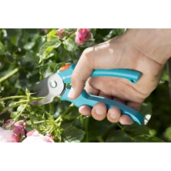 De GARDENA Classic snoeischaar is de klassieker onder de snoeischaren – met alle eigenschappen van een goede snoeischaar. Deze snoeischaar is krachtig, modern en ergonomisch, en vooral geschikt voor het snoeien van bloemen en jonge scheuten. De messen van de gebogen snoeikop zijn precisiegeslepen en voorzien van een antikleefcoating. Dankzij de ergonomisch gevormde handgrepen ligt de snoeischaar optimaal in de hand. De snoeischaar heeft twee werkposities, één voor krachtsnoei en één voor snelsnoei. De snoeischaar heeft een sapgeul en een draadafsnijder. Met de enkelhandige veiligheidsvergrendeling kan de snoeischaar gemakkelijk worden vergrendeld en veilig opgeborgen. De Classic snoeischaar kan takken met een maximale diameter van 18 mm snoeien.
