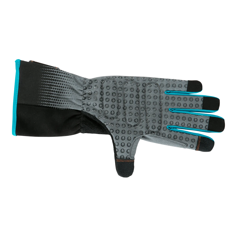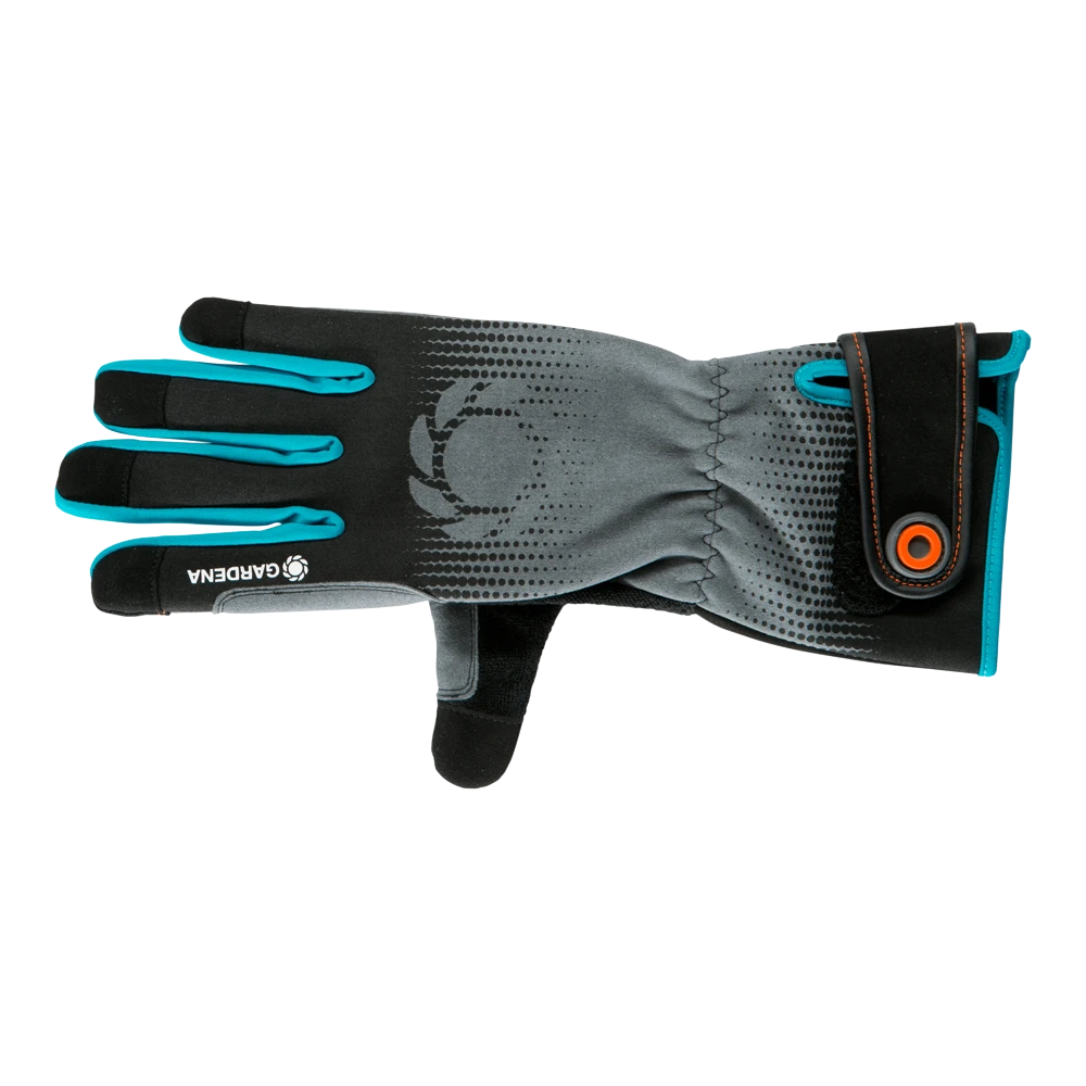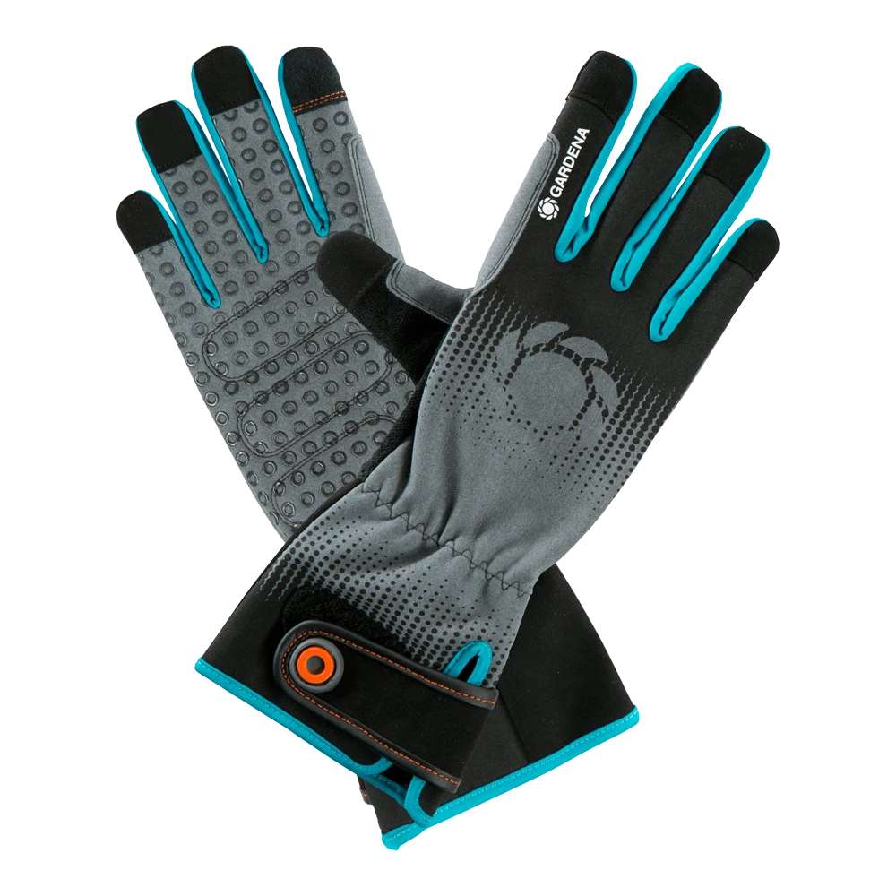 De struikhandschoen in maat M van GARDENA is uw perfecte metgezel bij het snoeien van struiken en het omgaan met dichte ondergroei in de tuin. Deze duurzame tuinhandschoen voor middelgrote handen is gemaakt van een robuust materiaal dat u beschermt tegen schrammen en brandnetels. De lange boord beschermt uw pols en onderarm. Bij het gebruik van tuinsnoeischaren voelt u de hoge kwaliteit van de handschoenen. Bovendien is de stof tussen duim en wijsvinger versterkt, omdat dit gebied vaak erg slijt, wat betekent dat de handschoen lang meegaat. De struikhandschoen is erg comfortabel: de handpalm van de handschoen heeft een siliconencoating. Hierdoor liggen snoeischaren niet alleen goed in de hand, maar kunnen ze niet wegglijden. Zelfs de bediening van een smartphone of tablet is altijd mogelijk dankzij de Mobile Touch-functie op de duim en wijsvinger. Omdat de voor smartphonegebruik geschikte struikhandschoen de Oeko-Tex® Standard 100-certificering heeft, zijn de gebruikte textielsoorten vrij van schadelijke stoffen.