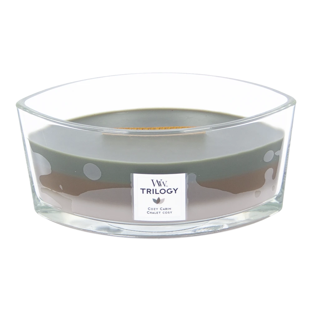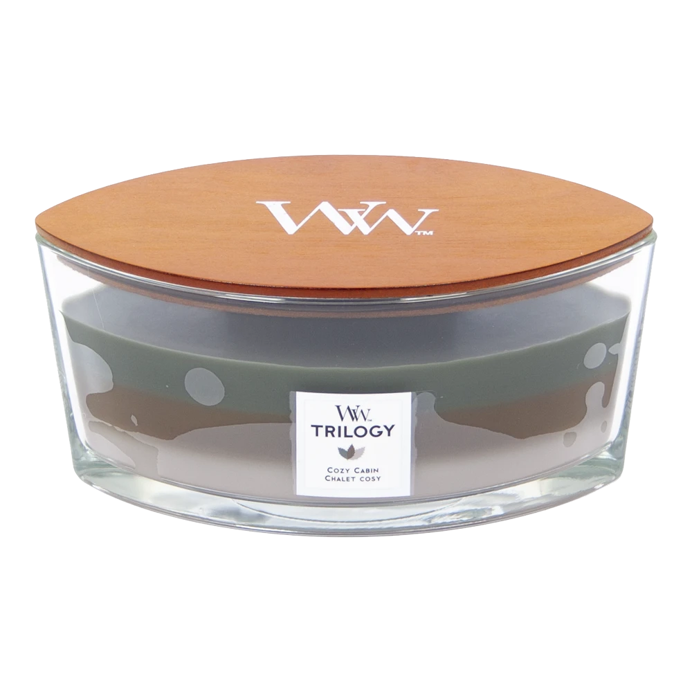 Woodwick Trilogy Cozy Cabin Ellipse Candle – Geurkaars