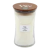 Details van de Woodwick White Tea Jasmine geurkaars: